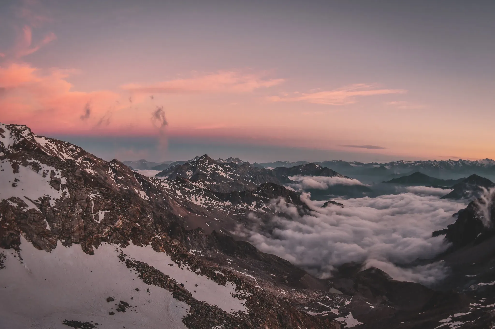 Depuis les hauts cols et les plateformes glaciaires, les panoramas s’étendent sur l’ensemble des Alpes : Cervin, Weisshorn, Mont Blanc, Gran Paradiso… L’aube et le crépuscule offrent des teintes rosées spectaculaires, phénomène à l’origine de la légende de la "rosa" dans Mont Rose.